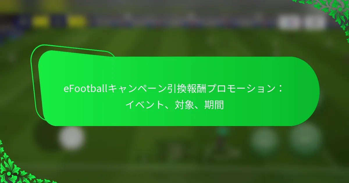 eFootballキャンペーンの引き換えプロセスは、プレイヤーが一連の簡単なステップを通じて報酬を獲得できるように設計されています。貴重なゲーム内アイテムを逃さないために、キャンペーンの開始日や締切を把握しておくことが重要です。さらに、プレイヤーはこれらの報酬を受け取るために特定のアカウントおよびゲーム進行の基準を満たす必要があり、全体的なゲーム体験を向上させます。